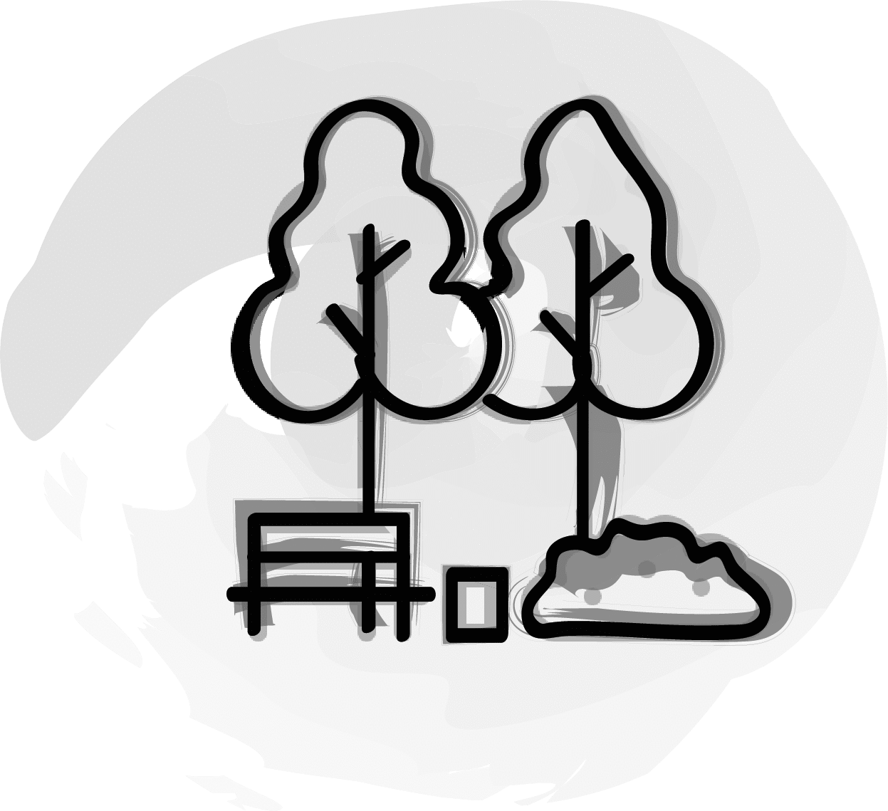 mit Spielmöglichkeiten und Aufenthaltsbereichen
